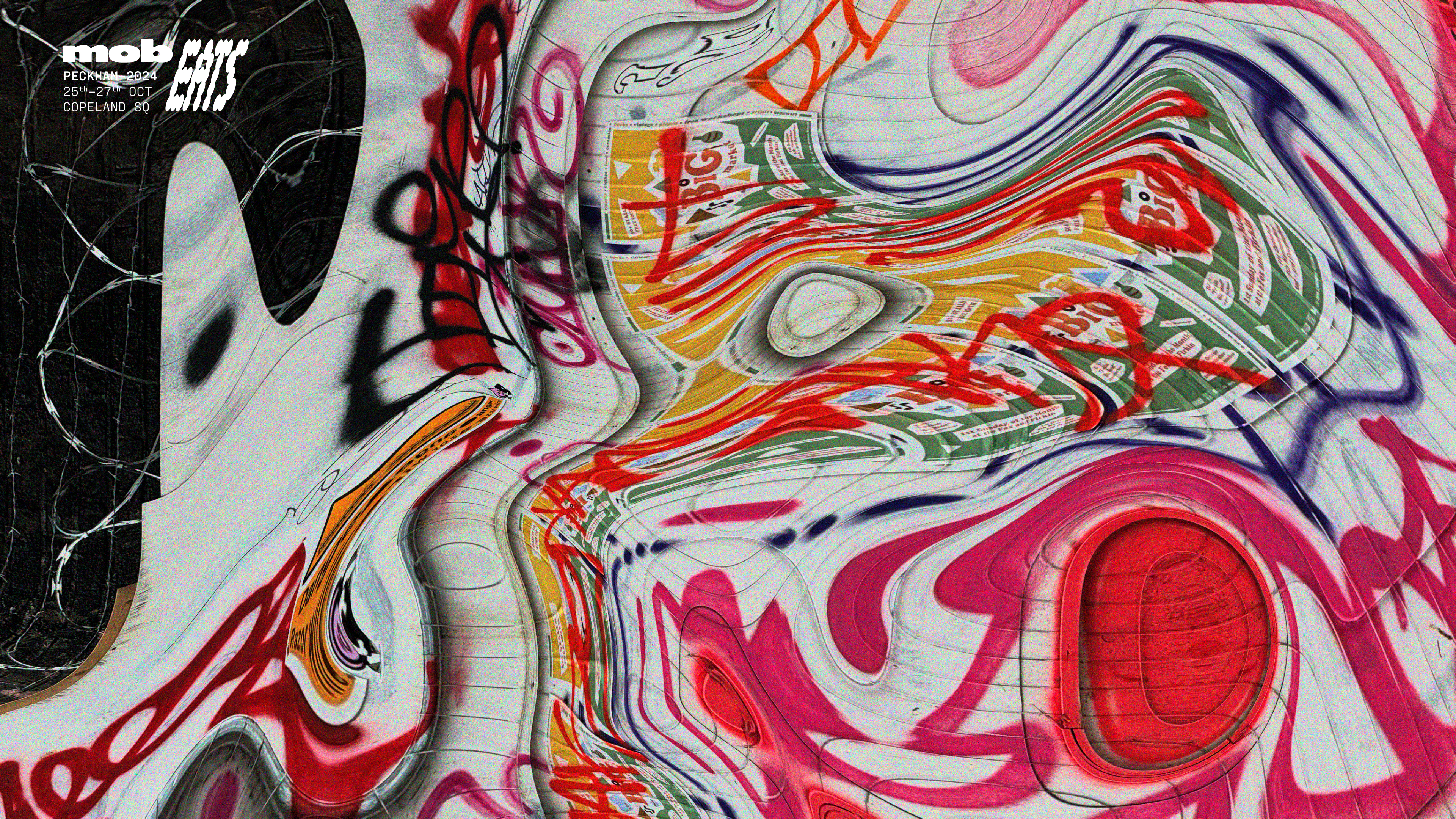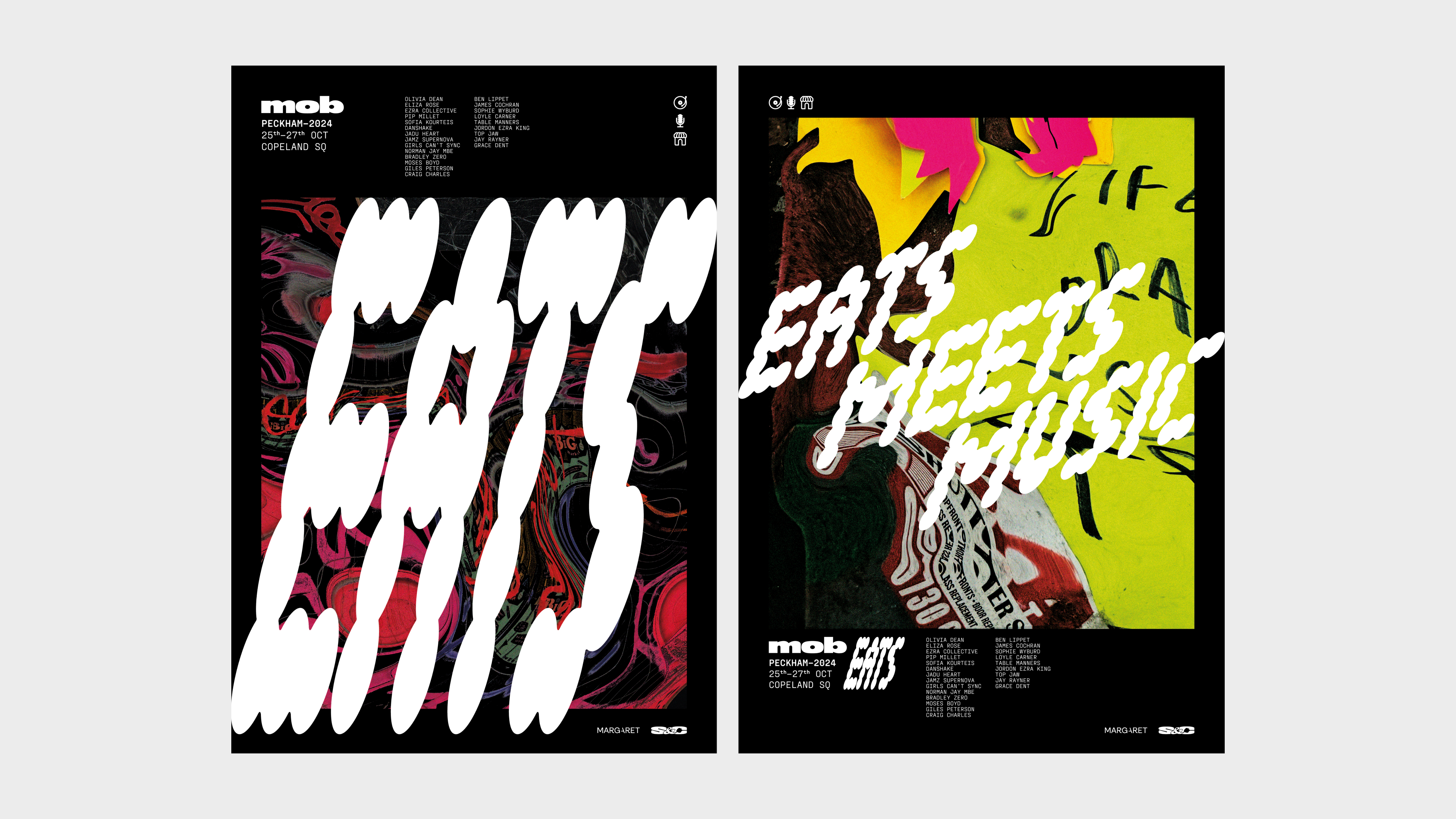 Brand identity concept for Mob Eats, a planned multi-day food + music festival in South London. Created the full festival branding — visual language, custom typefaces and supporting imagery (unreleased).