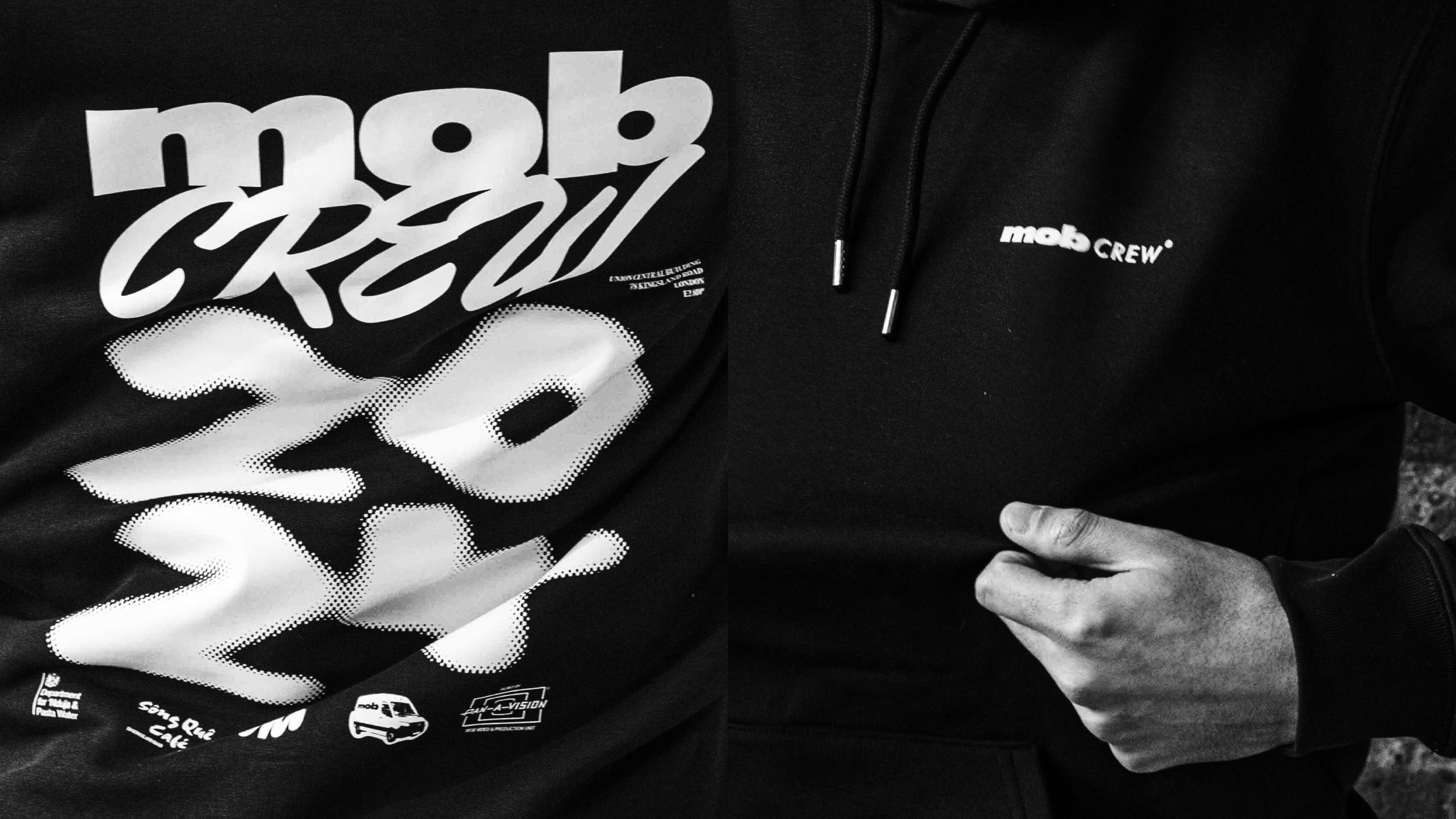 Merch capsule for internal use, translating Mob’s visual language into wearable branded pieces and production-ready artwork.