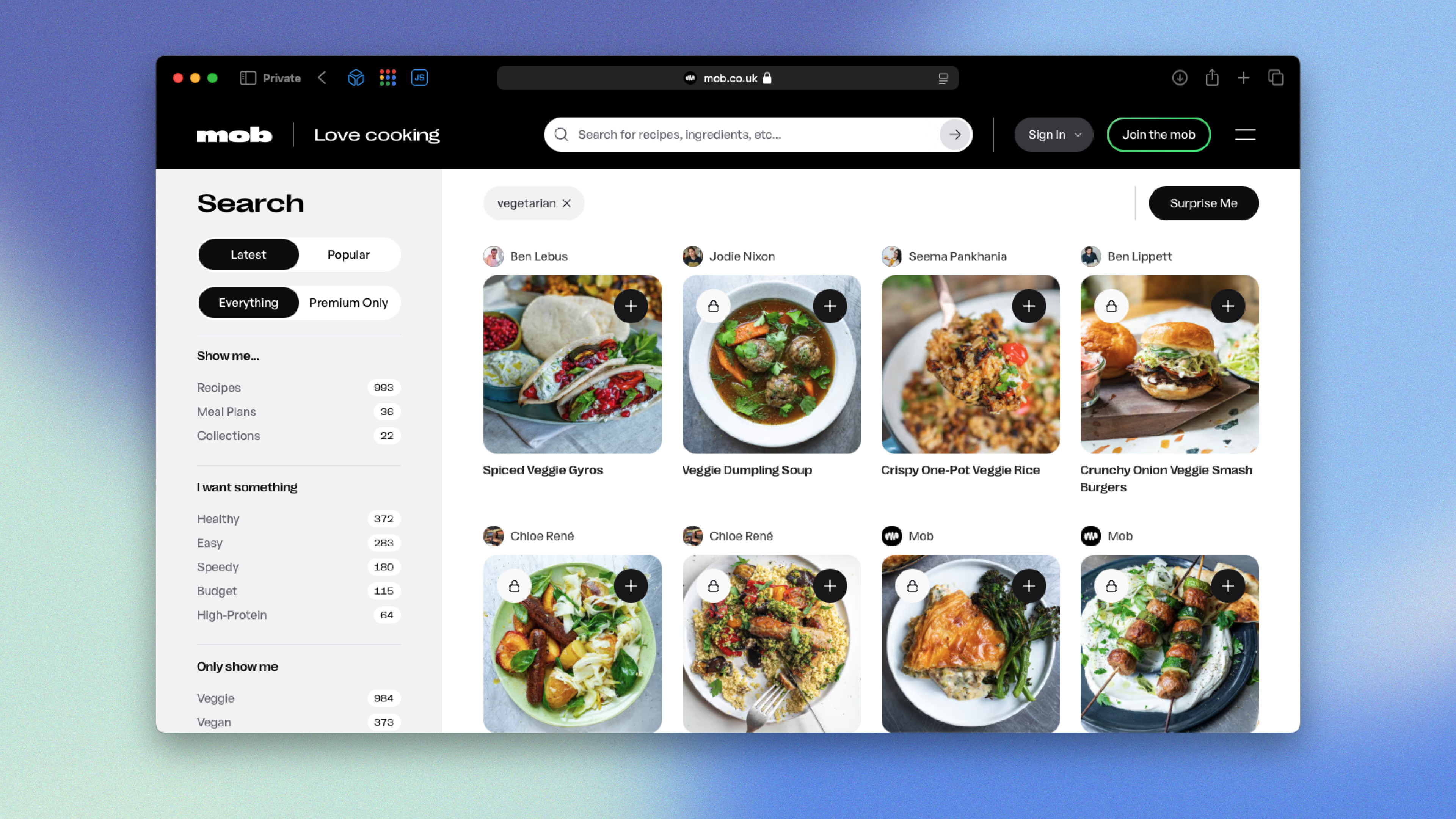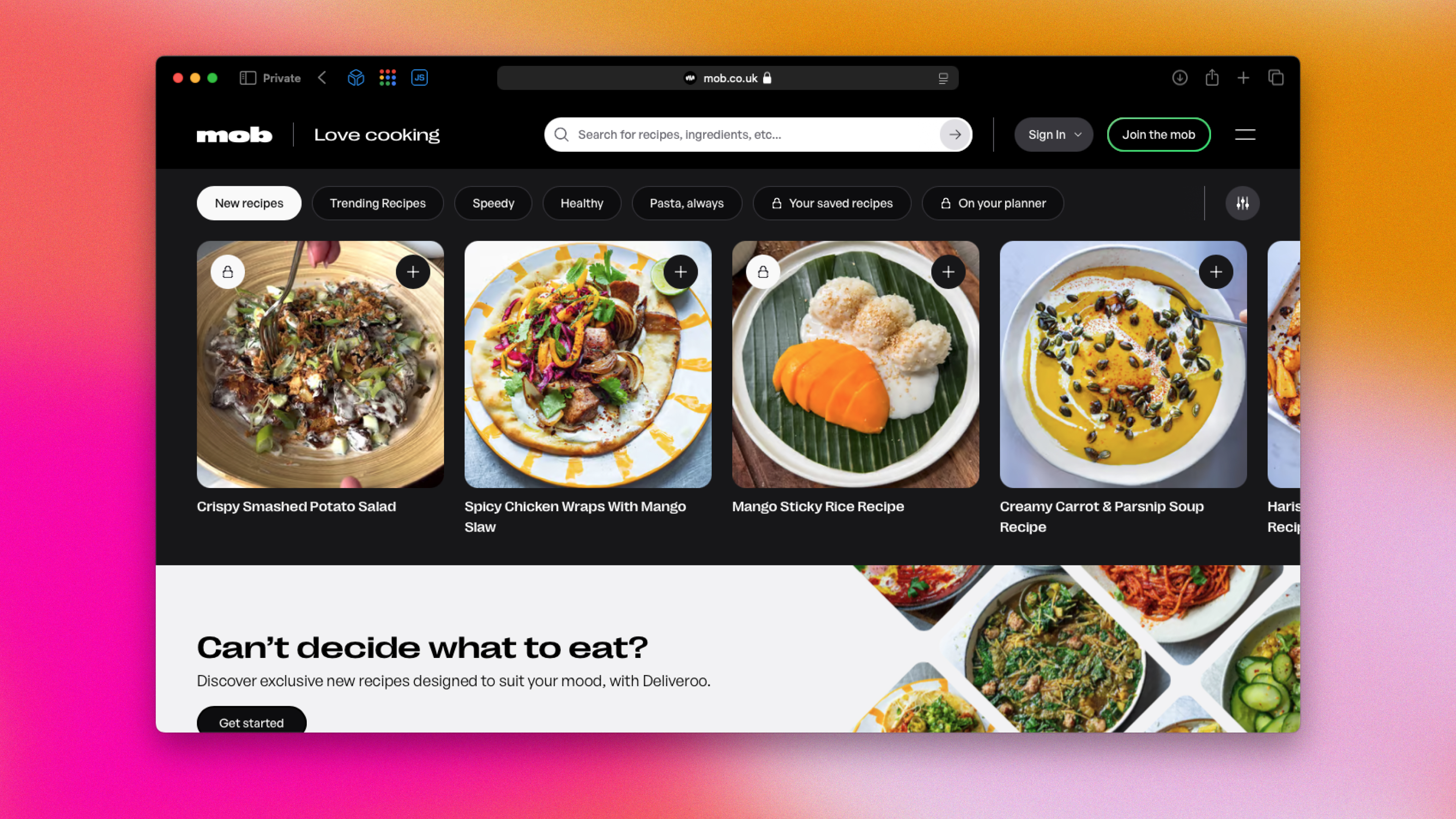 Art direction and UI design for Mob, a food platform spanning recipes, video and subscription content. Led the visual language for the refreshed website and app, including the Mob+ subscription experience, from early concepts through to shipped UI and rollout assets.